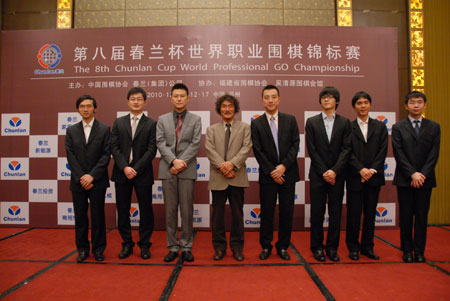 11月13日下午5時(shí),第八屆“春蘭杯世界職業(yè)圍棋錦標(biāo)賽”組委會(huì)在福州香格里拉大酒店,舉行了本屆“春蘭杯”八強(qiáng)賽和半決賽新聞發(fā)布會(huì),宣布14日和16日上午9:30分別進(jìn)行本屆春蘭杯八強(qiáng)賽和半決賽。16日晚上形成冠亞軍和三、四名對(duì)陣表,17日比賽全部結(jié)束。