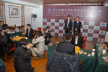 經(jīng)過15日一天的修整,16日上午9:30,第八屆“春蘭杯世界職業(yè)圍棋錦標賽”半決賽燃起烽火。14日勝出的4名棋手:謝赫七段、古靈益五段、李世石(韓國)九段、許應皓(韓國)七段,按照前天的抽簽結(jié)果對陣,進行前四名位次的爭奪。 古靈益(執(zhí)黑)VS 李世石(執(zhí)白) 謝 赫(執(zhí)黑)VS許映皓(執(zhí)白) 下午五時半左右,將決出爭奪冠亞軍和第三名的棋手。