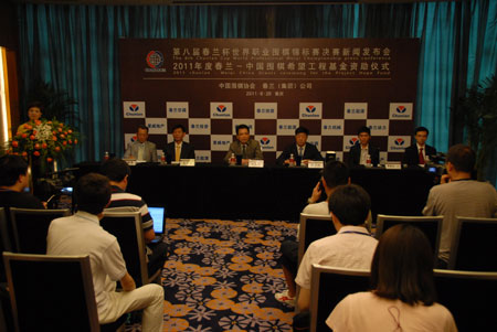 除發(fā)布第八屆春蘭杯決賽新聞之外,當天還在此隆重舉行了“春蘭—中國‘圍棋希望工程’基金”資助儀式。 “春蘭—中國‘圍棋希望工程’基金”是春蘭集團于2001年設(shè)立的一項旨在扶持、激勵國內(nèi)優(yōu)秀小棋手茁壯成長、脫穎而出的基金,其資助的對象是:年齡在16周歲以下(含16周歲)、家庭生活水平比較困難、省級圍棋協(xié)會認定在圍棋上具有發(fā)展?jié)撡|(zhì)、無明顯的劣跡記錄的青少年。或者是進入世界錦標賽比賽前八名;進入國家少年隊;前二年等級分平均值進入全國前100名的青少年。在同等條件下,老少邊窮地區(qū)及熱心開展圍棋活動、普及業(yè)績好的地區(qū)的少年棋手將優(yōu)先入選。 今年獲得春蘭圍棋基金資助的少年棋手共10名,分別來自重慶、貴陽、安順等地區(qū),他們的年齡平均只有10歲,其中年齡最大的為14歲,最小的只有6歲。10人中,段位最高的是專業(yè)初段,最低的為業(yè)余一級。這些小棋手均是經(jīng)春蘭圍棋基金管理委員會反復遴選、確認的頗具發(fā)展?jié)撡|(zhì)的少年圍棋“尖子”。 此次他們每人將獲得春蘭集團5000元的資助。 據(jù)了解,第八屆“春蘭杯世界職業(yè)圍棋錦標賽”第一階段比賽,于2010年3月25日在北京中國棋院舉行,參賽的24名中外棋手(含第一輪比賽輪空的8名種子選手),經(jīng)過兩天的鏖戰(zhàn),產(chǎn)生了前八強;12月14日和16日,八強賽及半決賽在福建省福州市吳清源圍棋會館再燃戰(zhàn)火,經(jīng)過激烈爭鋒,形成了中國棋手謝赫與韓國棋手李世石冠亞軍之戰(zhàn),以及中國棋手古靈益與韓國棋手許映皓三四名之戰(zhàn)的對陣表。