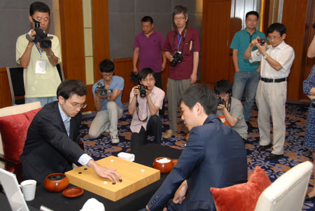 6月30日上午9:30,第八屆“春蘭杯世界職業(yè)圍棋錦標(biāo)賽”決賽第三局比賽在重慶濱江皇冠假日酒店多功能1廳開戰(zhàn)。