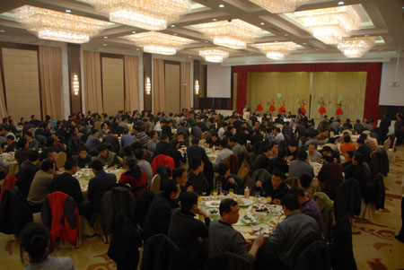 2月23日下午,為期12天的春蘭2013年市場推廣及駐外人員新春集訓(xùn)圓滿結(jié)束。這是春蘭營銷歷史上參加人數(shù)最多、培訓(xùn)時間最長的一次集訓(xùn)。25日,所有參加集訓(xùn)的人員將奔赴全國各地開展工作。 23日晚上,春蘭商務(wù)公司及相關(guān)工廠在泰州賓館設(shè)宴為所有集訓(xùn)人員餞行,以壯行色。泰州賓館中華廳內(nèi)華燈高照,人聲鼎沸,春蘭在此為市場推廣及駐外人員舉行盛大宴會。集團領(lǐng)導(dǎo)、商務(wù)公司及相關(guān)工廠領(lǐng)導(dǎo)出席了宴會,各駐外營銷管理中心和相關(guān)工廠的營銷人員在宴會上表演了自己編排的小品、舞蹈、魔術(shù)和歌曲等節(jié)目,臺上臺下互動互勉,顯現(xiàn)對今年市場發(fā)展充滿信心。