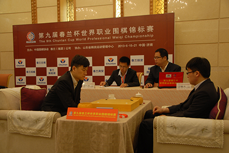 6月17日上午9:30,第九屆“春蘭杯世界職業(yè)圍棋錦標(biāo)賽”決賽在濟(jì)南市山東大廈二樓煙臺(tái)廳拉開(kāi)戰(zhàn)幕。這是中國(guó)棋手陳耀燁九段與韓國(guó)棋手李世石九段爭(zhēng)奪冠軍的第一局比賽,同時(shí)也是中國(guó)棋手孔杰九段與江維杰九段角逐第三名的決賽。