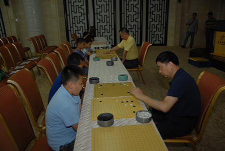 為推動中國圍棋事業(yè)的發(fā)展,培養(yǎng)更多的圍棋新秀,6月17日下午,借第九屆“春蘭杯”決賽在濟(jì)南山東大廈舉辦之機(jī),國家圍棋隊(duì)總教練俞斌九段、韓國著名棋手盧永夏九段、中央電視臺著名講師王元八段,在濟(jì)南山東大廈二樓中華廳與山東天弈圍棋隊(duì)的6名小棋手下了一對二的指導(dǎo)棋。