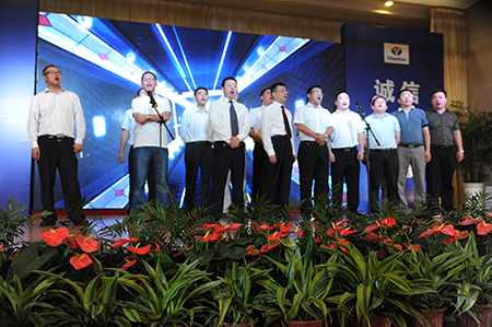 9月1日晚6時30分,春蘭在泰州賓館舉行了2014春蘭空調(diào)第一次客戶懇談會歡迎晚宴,所有與會客戶參加了晚宴。晚宴上,春蘭商務公司總經(jīng)理曹天虹致祝酒詞,同時,省(市)著名演出團體表演了眾多精彩的節(jié)目。整個晚宴現(xiàn)場充滿歡聲笑語,洋溢出真誠合作、快樂營銷、共贏發(fā)展的氣氛。