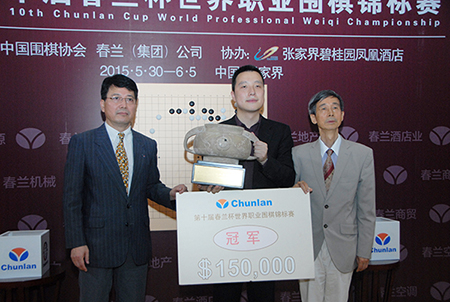 決賽結(jié)束后,主辦方舉行了第十屆“春蘭杯”頒獎儀式,春蘭(集團)公司高級副總裁劉亞夫、中國圍棋協(xié)會主席王汝南,為獲得第十屆“春蘭杯”冠軍的古力九段頒發(fā)了獎金和獎杯。“春蘭杯”總獎金有40萬美元,其中冠軍獎金15萬美元,亞軍獎金5萬美元。