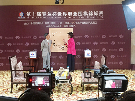 為此次“春蘭杯”決賽投入大量人力、物力的CCTV 5+體育賽事頻道,于6月1日和3日的15時30分至17時,全程高清直播了中國圍棋協(xié)會主席王汝南與美女棋手徐瑩,以及著名棋手劉小光與國家圍棋隊領(lǐng)隊華學明,掛盤講解的古力與周睿羊第一局和第二局比賽的精彩對局。全國的圍棋愛好者通過電視上的央視5套,以及電腦、手機上的央視網(wǎng),直接觀看了本屆“春蘭杯”冠亞軍的兩場決賽。