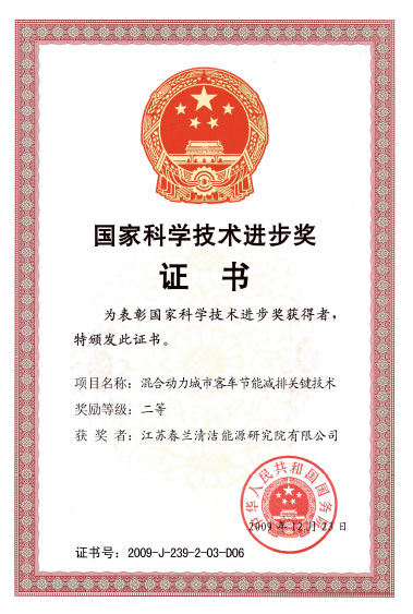 2009年度國家科學技術(shù)獎勵共授獎374項(人)。其中,國家最高科學技術(shù)獎獲得者2人,國家自然科學獎28項,技術(shù)發(fā)明獎55項和科技進步獎282項。江蘇春蘭清潔能源研究院有限公司研發(fā)的“混合動力城市客車節(jié)能減排關鍵技術(shù)”,被授予“2009年度國家科技進步二等獎”。 國家科學技術(shù)進步獎是國家5項最高的科學技術(shù)大獎之一,它授予在應用推廣先進科學技術(shù)成果,完成重大科學技術(shù)工程、計劃、項目等方面,做出突出貢獻的公民和組織。 據(jù)了解,春蘭自主開發(fā)高能動力鎳氫電池及管理系統(tǒng)已有十多年時間。其集團旗下的春蘭清潔能源研究院有限公司,是國內(nèi)高能動力鎳氫電池及管理系統(tǒng)專業(yè)生產(chǎn)企業(yè),產(chǎn)品已廣泛應用于混合動力汽車、高速機車、儲能電站、通信電源、自動化物流機器人等眾多領域。在車用動力電源方面,春蘭清潔能源研究院有限公司研發(fā)的200AH—600AH高容量車用鎳氫動力電源系統(tǒng)產(chǎn)品,以及“混合動力城市客車節(jié)能減排關鍵技術(shù)”,已在混合動力客車、混合動力轎車、高速機車和純電動汽車等各種車型上得到充分應用。2008年北京奧運會和世界經(jīng)濟論壇第三屆新領軍者年會(簡稱夏季達沃斯論壇)使用的混合動力客車,以及國內(nèi)十多個城市投入試運行和商業(yè)運營的千余輛混合動力公交車,裝配和采用的就是春蘭車用鎳氫動力電源系統(tǒng)產(chǎn)品及“混合動力城市客車節(jié)能減排關鍵技術(shù)”。近年來,春蘭清潔能源研究院有限公司車用動力電源系統(tǒng)產(chǎn)品獲得專利達42項,其中發(fā)明專利14項,并相繼獲得“中國標準創(chuàng)新貢獻獎”、“國家首批自主創(chuàng)新產(chǎn)品”和“國家重點新產(chǎn)品”證書等。 業(yè)內(nèi)專家評論說,春蘭“混合動力城市客車節(jié)能減排關鍵技術(shù)”研發(fā)成果,打破了國內(nèi)混合動力城市客車節(jié)能減排技術(shù)的“瓶頸”, 加快了混合動力技術(shù)模塊化和平臺化趨勢,從而為全國混合動力城市客車的商業(yè)化推廣和應用開辟了道路。(孫廣明)