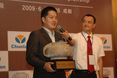 6月24日,“第七屆春蘭杯世界職業(yè)圍棋錦標(biāo)賽”決賽最大的懸念在代表巴蜀文化的著名景點“武侯祠”內(nèi)揭開,中國棋手常昊九段以2︰0戰(zhàn)勝韓國棋手李昌鎬九段奪得冠軍;而24日,第三、四名的比賽結(jié)果也見分曉,孔杰九段擊敗周鶴洋九段位列第三,周鶴洋則居第四。決賽結(jié)束后,主辦方舉行了隆重的頒獎儀式,四川省副省長陳文華、春蘭集團副總裁劉亞夫、中國圍棋協(xié)會副主席華以剛、成都市體育局局長覃文林、中國圍棋協(xié)會副秘書長王誼等出席了頒獎儀式,并為獲得本屆春蘭杯的冠亞軍及三、四名棋手頒發(fā)了獎杯和獎金。 據(jù)介紹,第七屆“春蘭杯世界職業(yè)圍棋錦標(biāo)賽”于2008年3月13日在浙江省杭州棋院揭開戰(zhàn)幕;同年12月9日,八強賽和半決賽在江西省南昌滕王閣點燃烽火;2009年6月22日至25日,決賽在成都打響,最后圓滿落幕。 據(jù)了解,新浪網(wǎng)專設(shè)網(wǎng)頁同步直播了本次比賽的對局和棋譜,搜狐網(wǎng)、TOM網(wǎng)、中國圍棋網(wǎng)、春蘭集團網(wǎng)等網(wǎng)站,也轉(zhuǎn)播了本次比賽的棋譜,并提供了相關(guān)圖片新聞和視頻報道。另外,本次春蘭杯比賽的部分精彩對局,均于比賽當(dāng)天下午4時在成都錦江賓館錦江廳,由中國圍棋協(xié)會副主席華以剛八段與棋界最佳講棋搭檔徐瑩五段進行了掛盤講解,約800人次到場觀棋。講解結(jié)束前,參賽棋手到講棋現(xiàn)場與棋友見了面,其互動場面非常熱烈。 另悉,為使更多的人了解、關(guān)注、支持和傳播“春蘭杯”,主辦方還在講棋現(xiàn)場舉辦了“幸運棋迷”抽獎活動,新浪網(wǎng)還在比賽前開展了春蘭杯有獎競猜等活動。(肖習(xí))